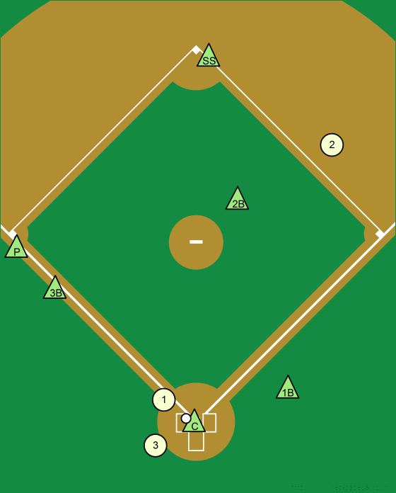 If runner at 3rd gets too far down line or breaks for home, 2nd baseman runs at runner 3 or throws home.